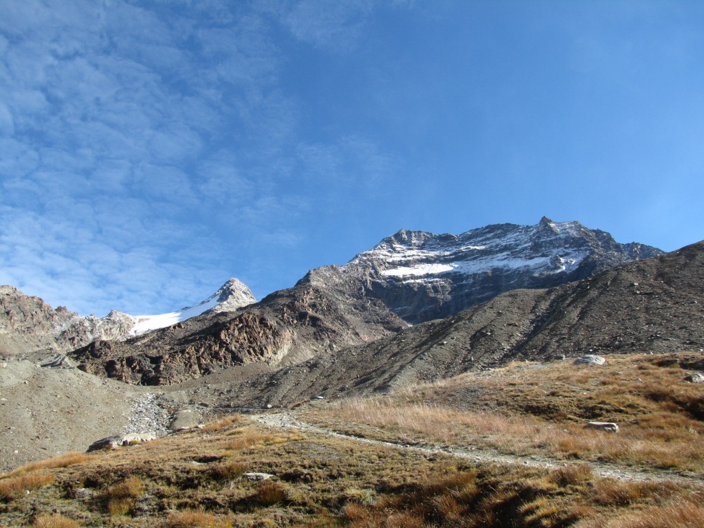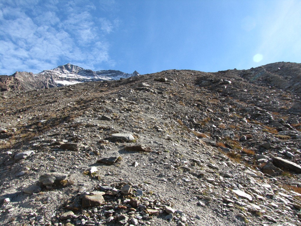 Blick hinauf zum Zwischbergenpass, der höchste wanderbare Pass der Schweiz Datum 26.01.2014