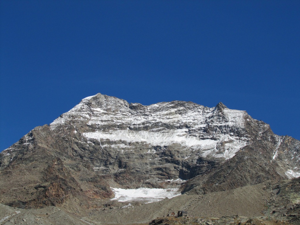 plötzlich taucht er vor uns auf, der Weissmies mit Triftgletscher Datum 23.01.2014
