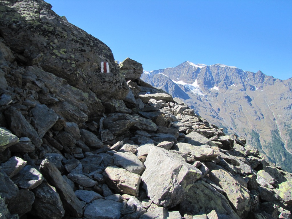 Blick zurück zu der Mischabelgruppe mit Dom Datum 26.01.2014