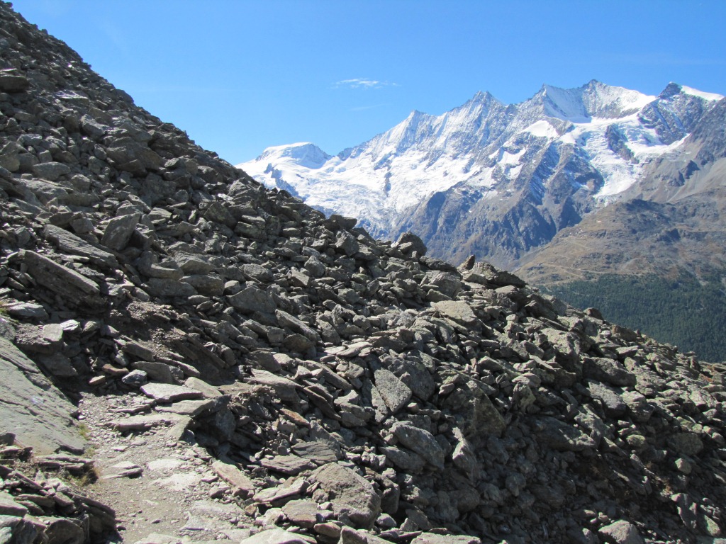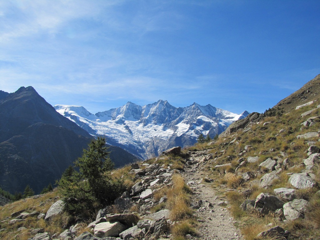 was für eine Aussicht wärend dem Wandern. Wir haben die ganze Mischabelgruppe vor unseren Augen Datum 26.01.2014