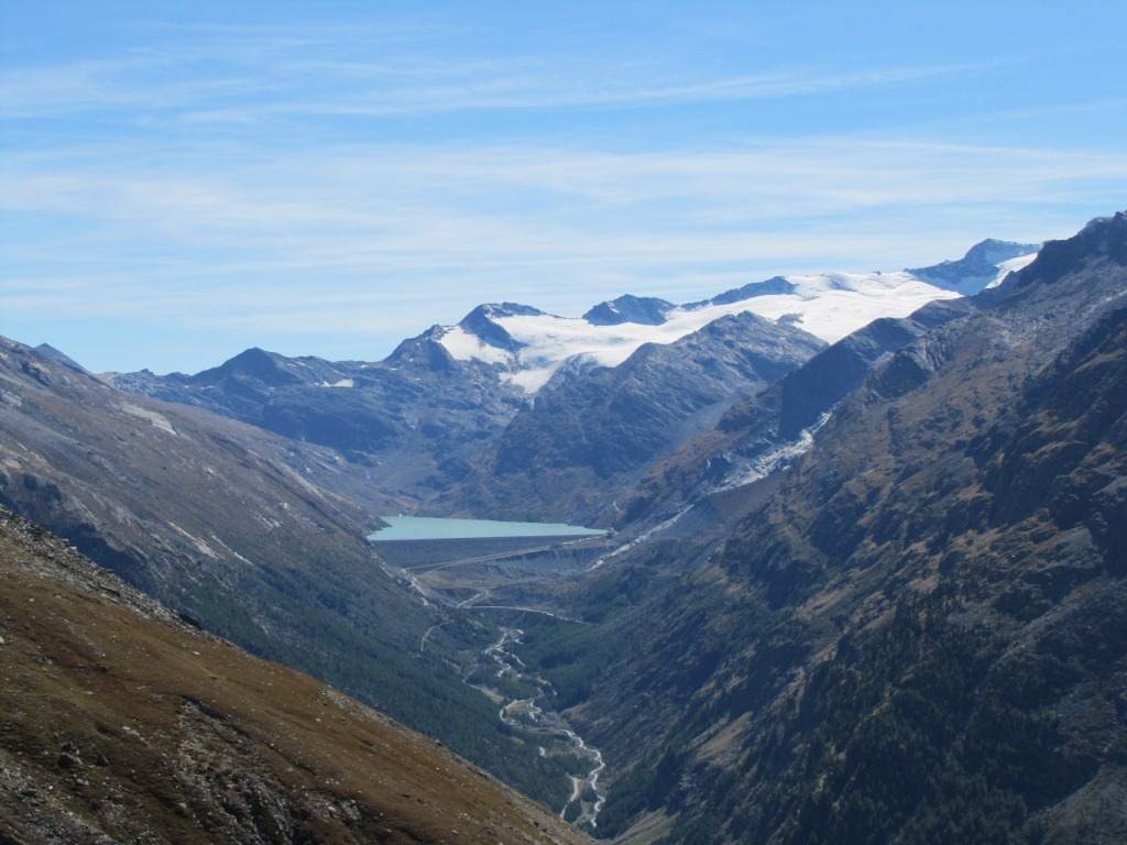 der riesige Mattmark Stausee. Dort waren wir auch schon und auf dem Monte Moro Pass Datum 26.01.2014