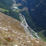 fast senkrecht geht es hier runter. Tiefblick ins Saas Tal und Saas-Almagell Datum 26.01.2014