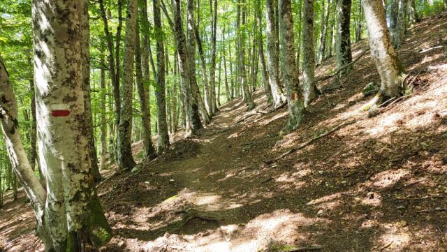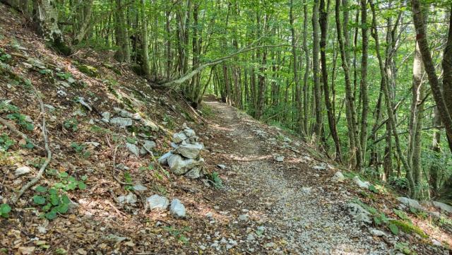 wir folgen der Markierung das uns durch einen Wald zwischen Cima d'Arme und Monti Ceresa führt