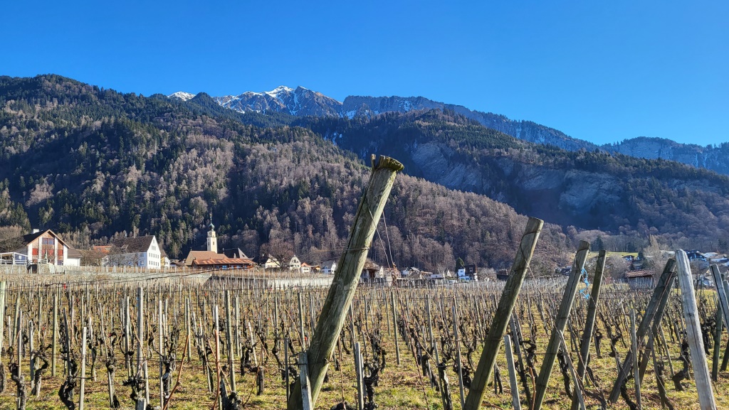 wir haben Maienfeld hinter uns gelassen. Über Rebhänge wandern wir Richtung Jenins