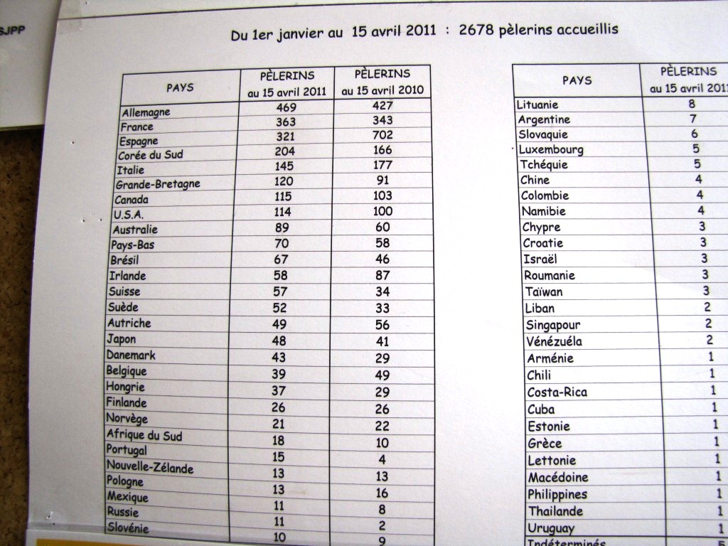 Informationen zu Anzahl und Herkunft der Pilger im Pilgerbüro Datum 09.07.2011