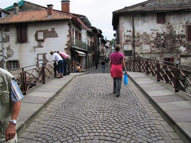 wir betreten die mittelalterlichen Brücke über die Nive Datum 09.07.2011