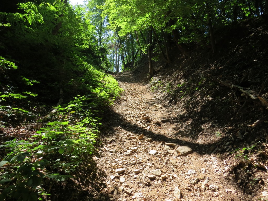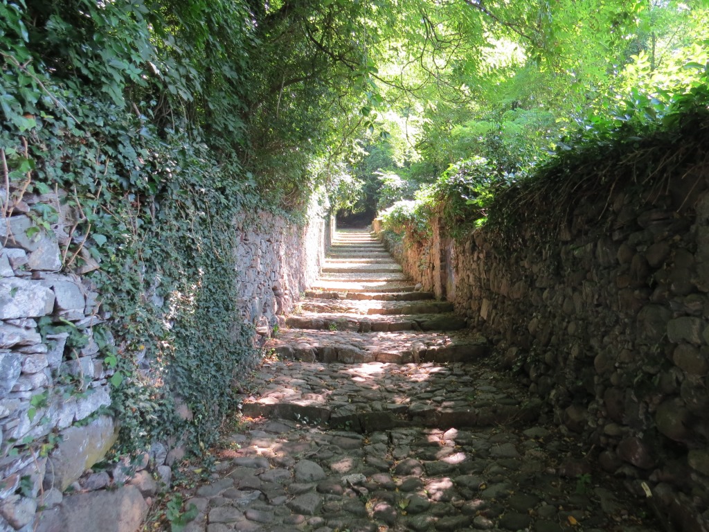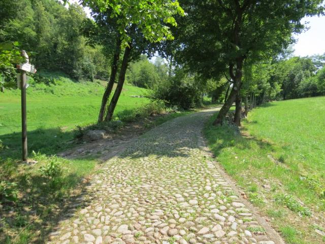 die Via Romea biegt nun in ein kleines bewaldetes Seitental hinein