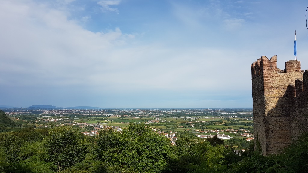wir blicken hinunter nach Marostica und dem Castello Inferiore