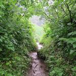 bei Nässe wie heute ist hier der Wanderweg rutschig