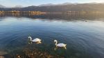 im Schilfgürtel, einer der unberührtesten Uferlandschaften der Ostschweiz, suchen Schwäne nach Futter
