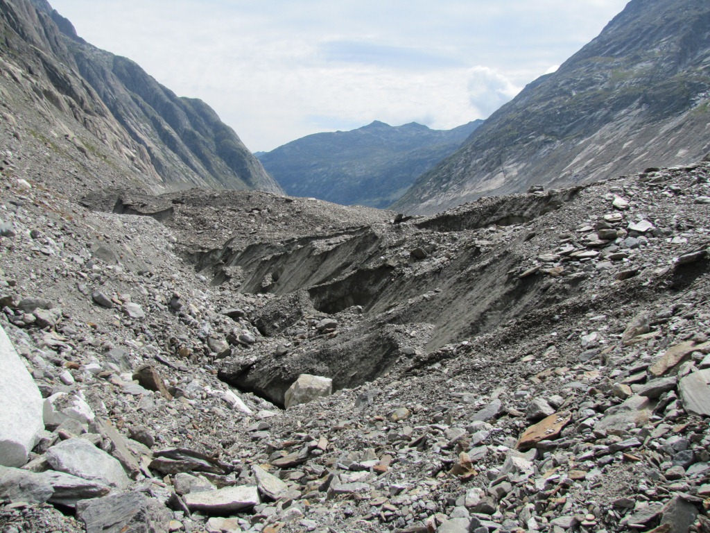 rechts vom Gletschermaul betritt man nun das durch Schutt verborgene Eis Datum 31.10.2011
