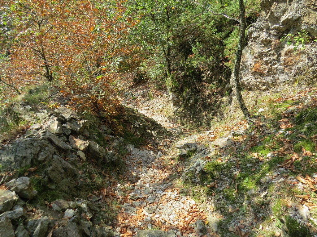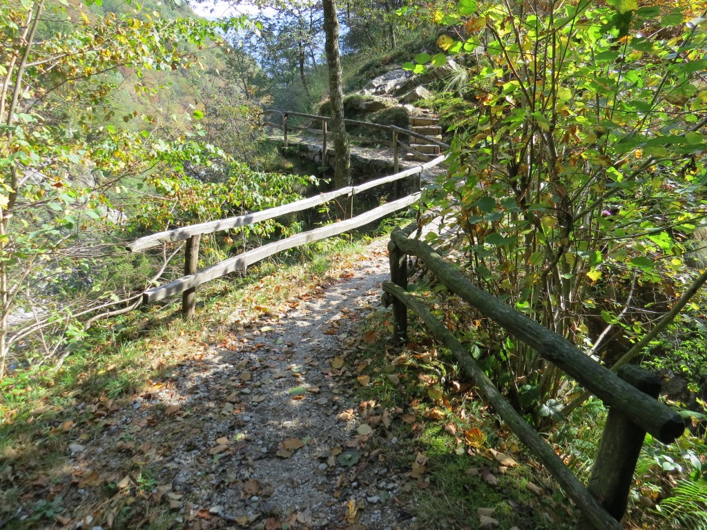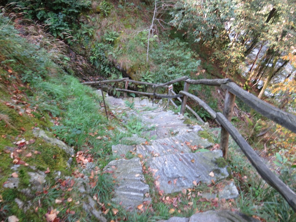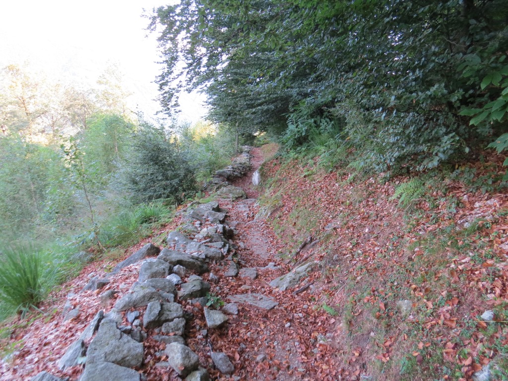 der gut ausgebaute Saumweg läuft nun oberhalb der Melezza durch stark bewaldete Hänge talauswärts...
