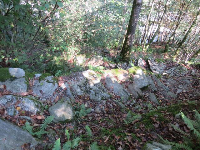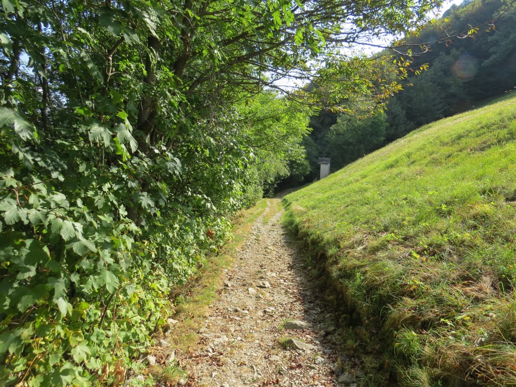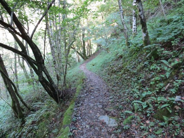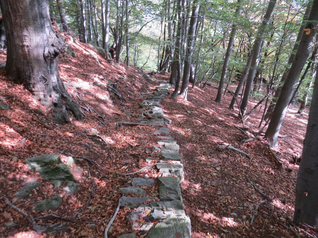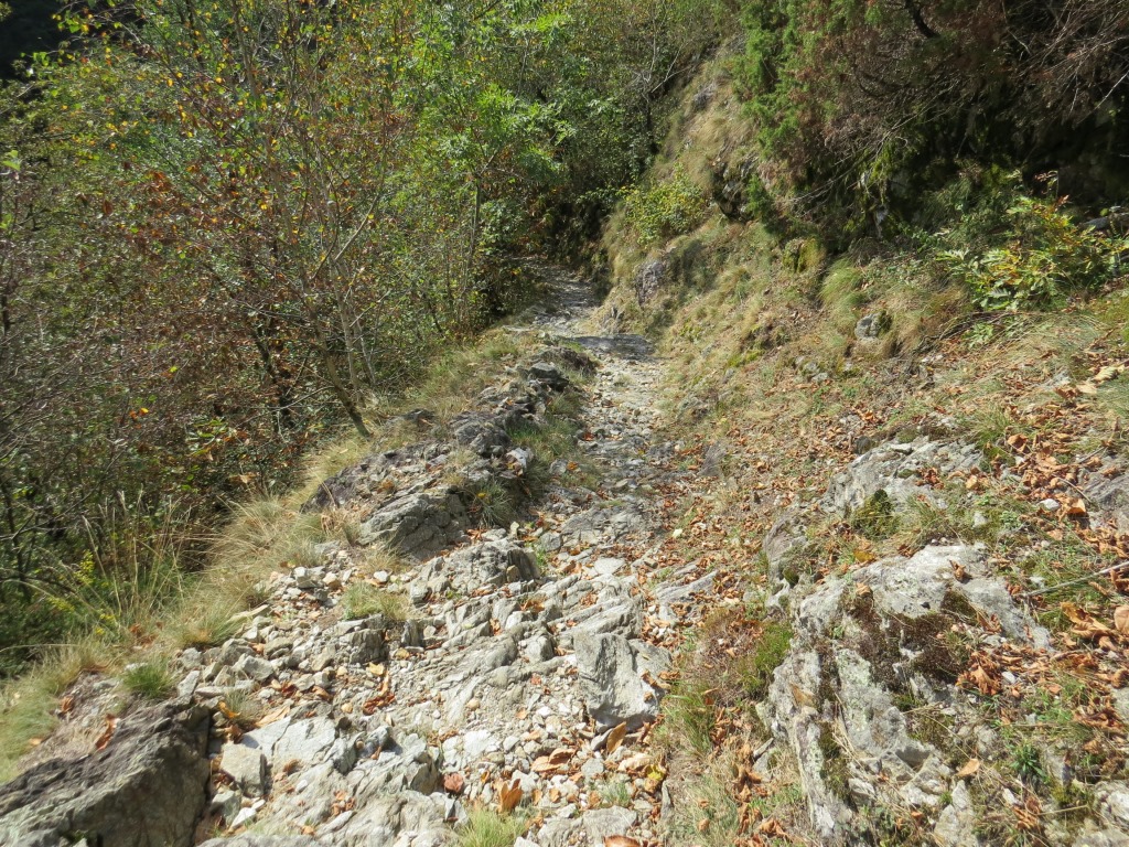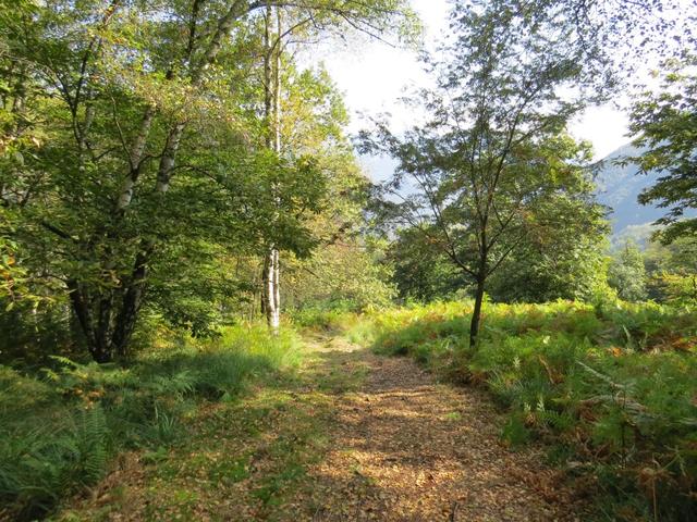 der gut ausgebaute Saumweg läuft nun oberhalb der Melezza durch stark bewaldete Hänge talauswärts...