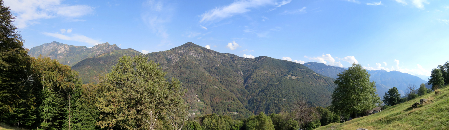 schönes Breitbildfoto mit Blick ins Centovalli. Ganz links der Pizzo Ruscada