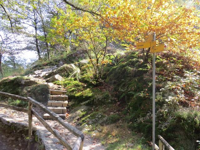 der Abstieg ins Centovalli führt zunächst in östlicher Richtung ebenen Weges aus dem Dorf...
