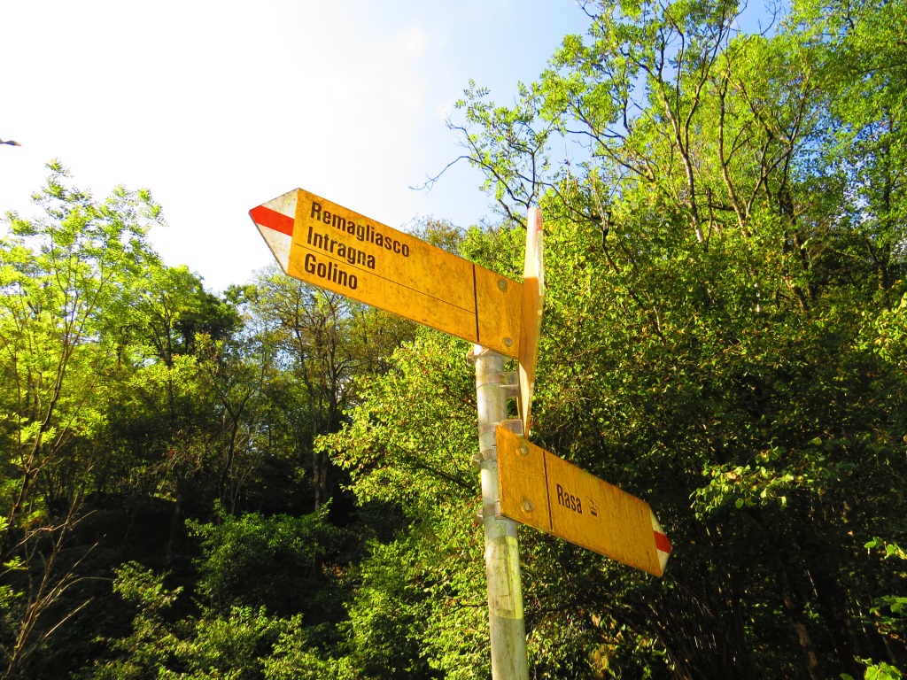 Wegweiser in Rasa 889 m.ü.M. bevor wir die Wanderung nach Intragna starten, wollen wir noch einen Kaffee geniessen