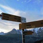 Wegweiser bei der Lobhornhütte 1955 m.ü.M. ein langer Wandertag steht uns bevor