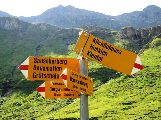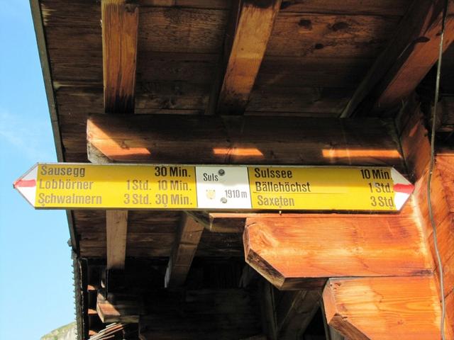 Wegweiser auf der Sulsalp 1910 m.ü.M. unser nächstes Ziel die Sausegg