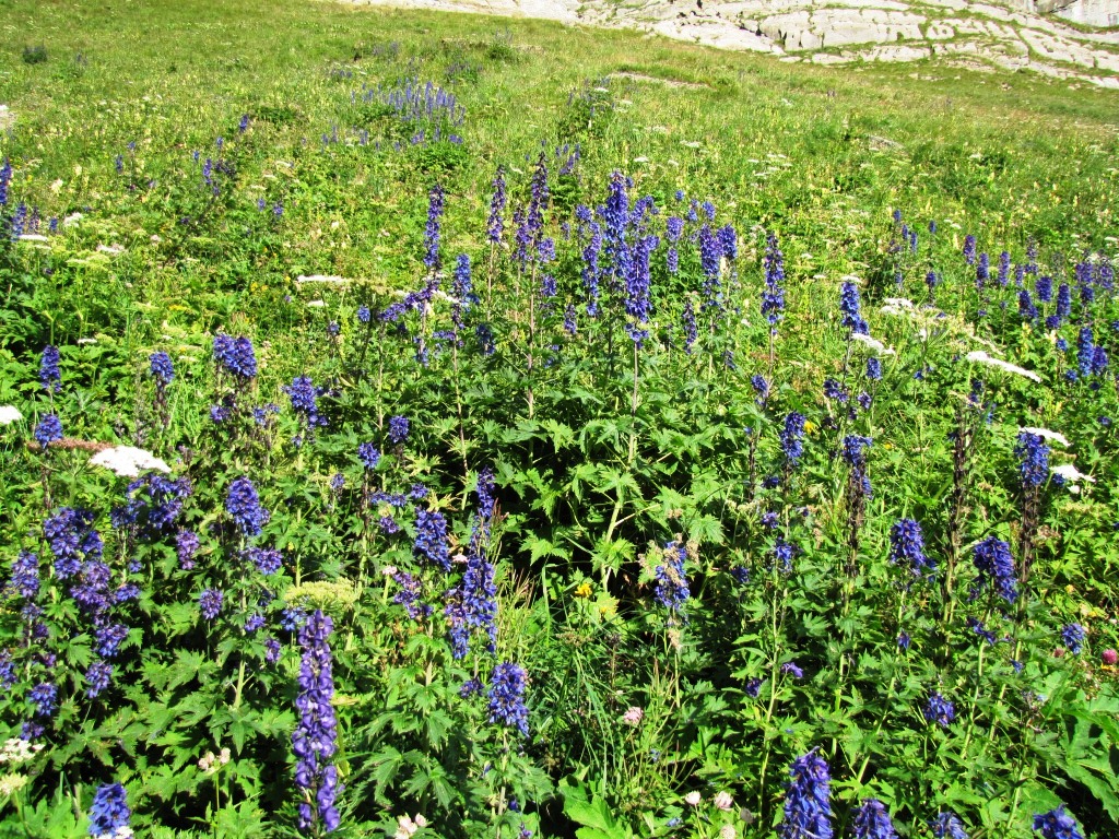 der ganze Hang ist bedeckt vom blauen Eisenhut. Eine schöne Blume aber giftig!