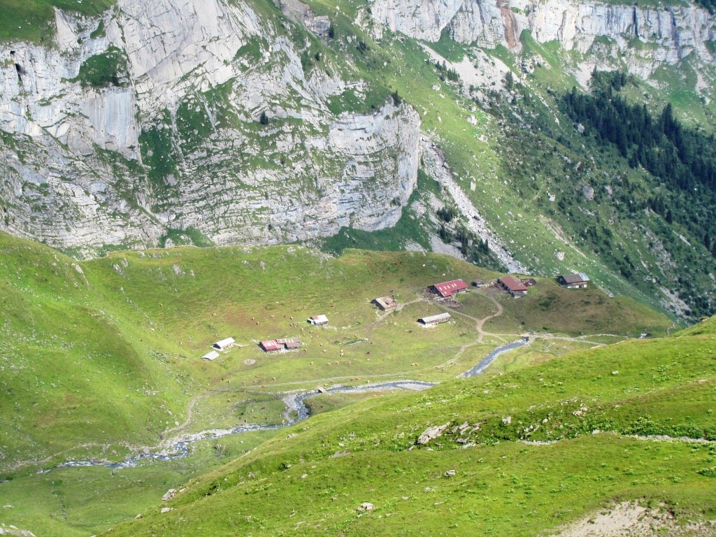 Blick hinunter zum Sousbach und Punkt 1703 m.ü.M.