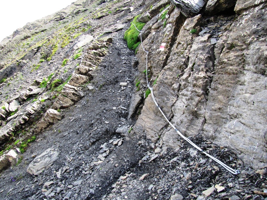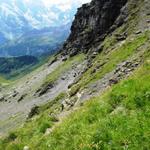 der Weg auf der anderen Seite der Bietenlücke ist genauso steil. Sicherungen sind vorhanden