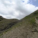 direkt vor uns gut ersichtlich die Bietenlücke. Es wird aber viel Schweiss fliessen bis wir dort oben ankommen