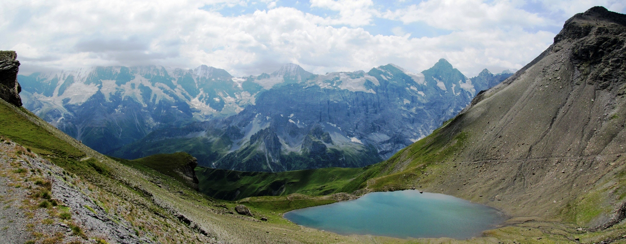 Breitbildfoto mit Blick in die Berner Hochalpen und auf den Grauseeli