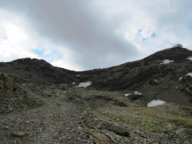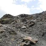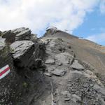 Blick hinauf zum Gratweg, der auf das Bietenhorn führt. Zuerst machen wir aber eine kurze Pause