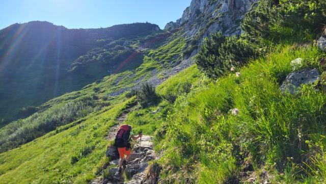 in leichtem Auf und Ab windet sich der Bergpfad durch die Legföhren Datum 20.12.2024