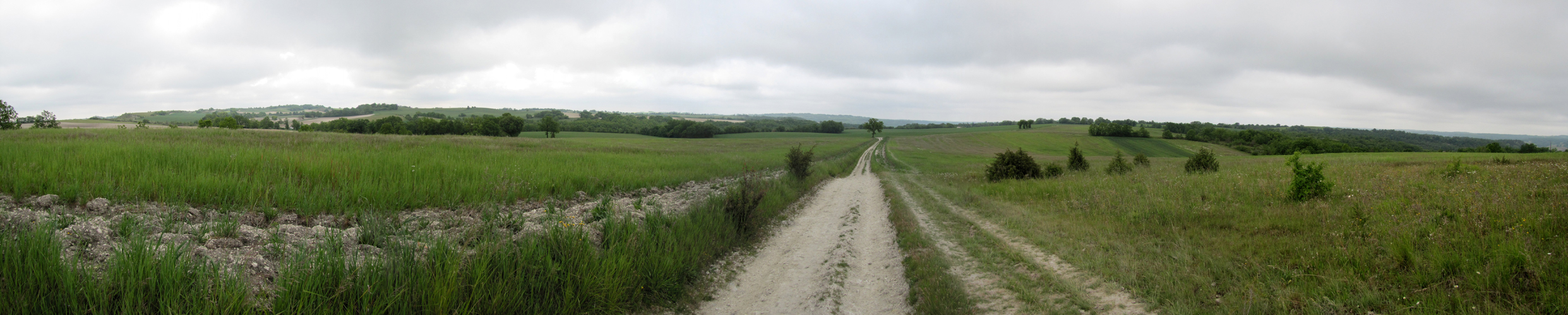 auf einem Höhenzug führt der Weg alles geradeaus Richtung Montcuq