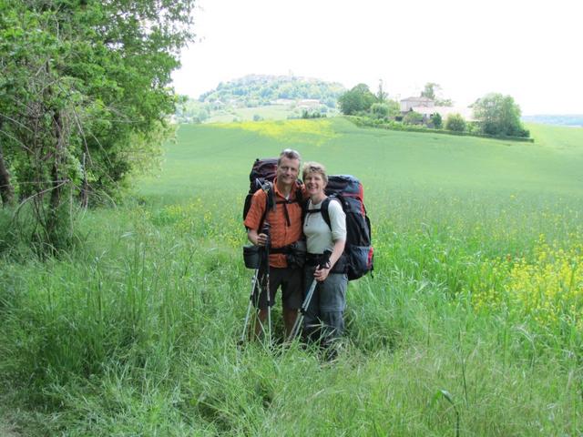 Mäusi und Franco. Im Hintergrund Lauzerte. der Name Lauzerte, stammt aus dem lateinischem und bedeutet "Lampe"