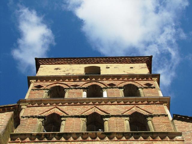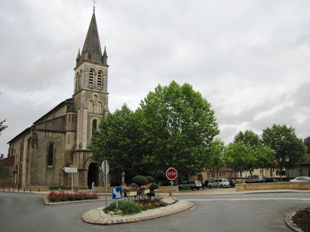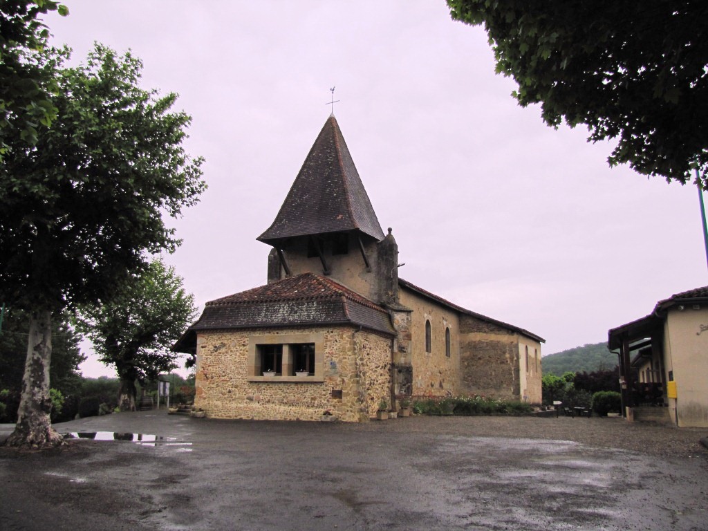 wir haben die Kirche von Lelin-Lapoujolle erreicht. Der Kirchturm mit draussen hängenden Glocken
