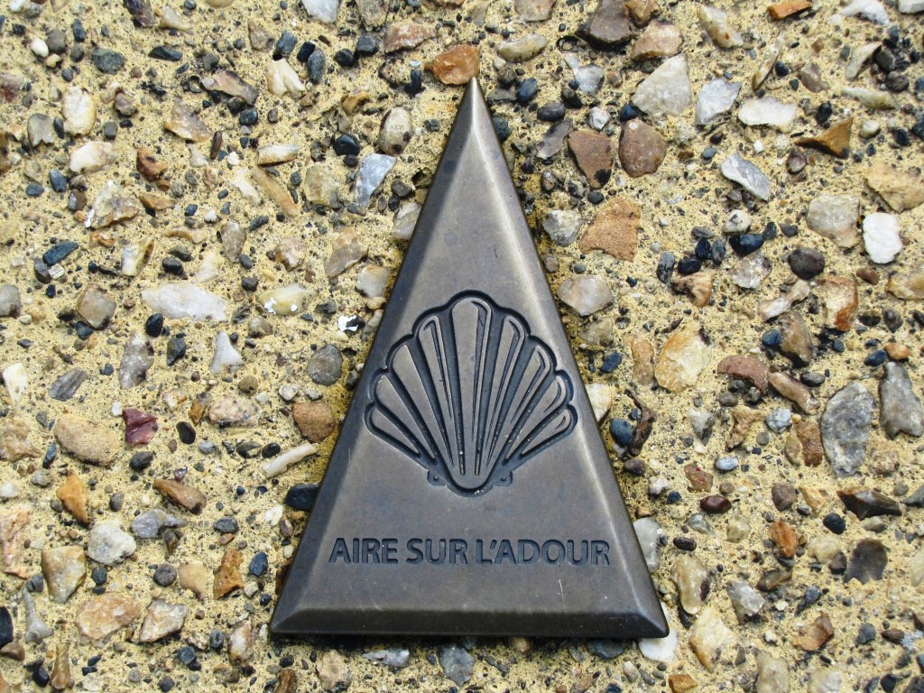 am Boden eingelassene Wegmarkierungen in Aire sur l'Adour