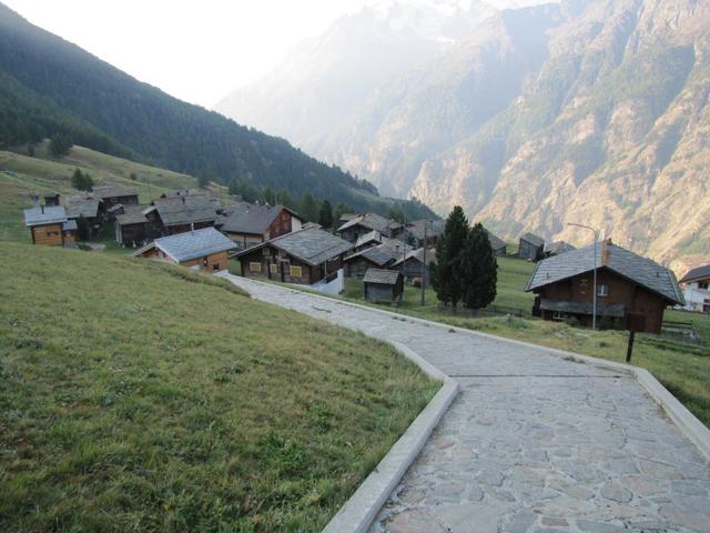 Blick zurück nach Gspon, das zur Hälfte schon an der Sonne liegt