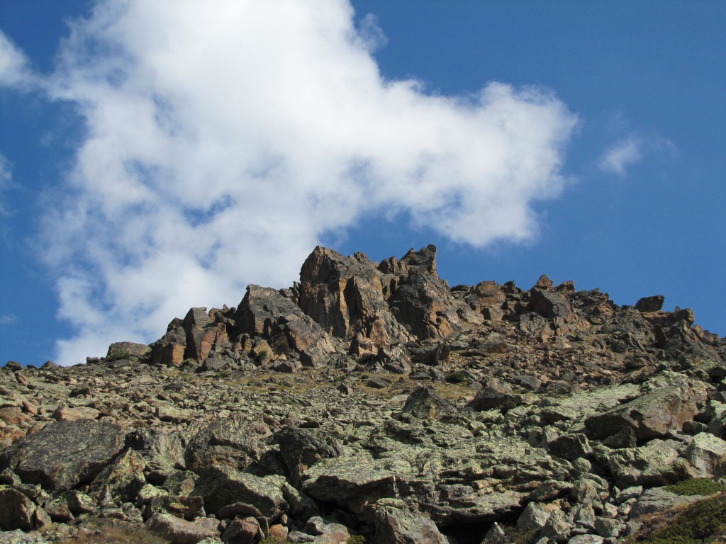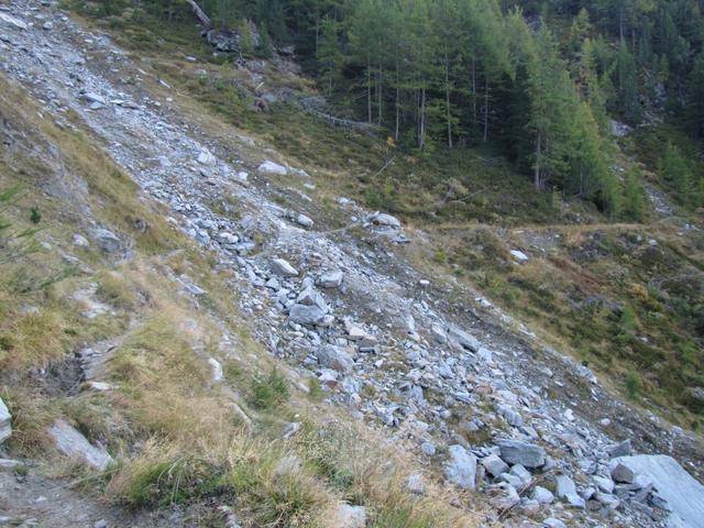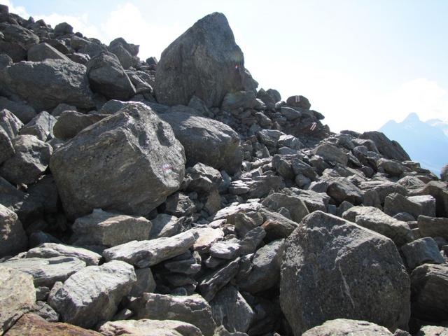 der Hang unterhalb vom Jegihorn ist voller Steintrümmer, die vom Jegihorn runtergefallen sind