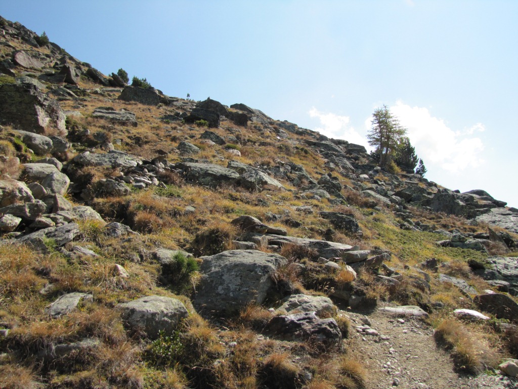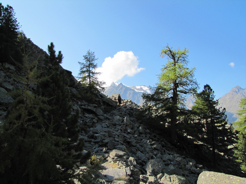 auf einem alten Moränenkamm, geht es zum ersten mal steil aufwärts