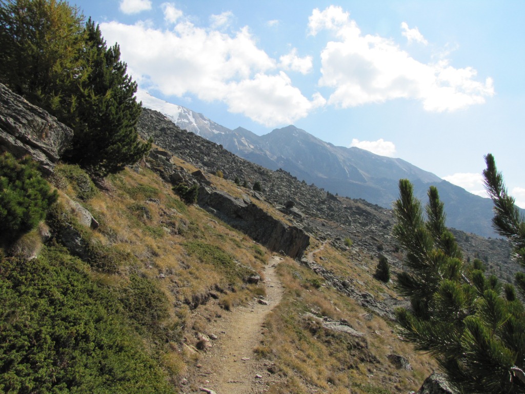 sehr schönes Breitbildfoto kurz vor Hoferälpji. Mit Blick Richtung Saas Fee