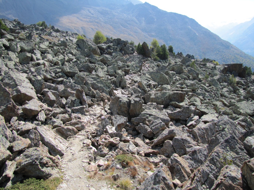 der Berpfad führt direkt in dieser Steinwüste