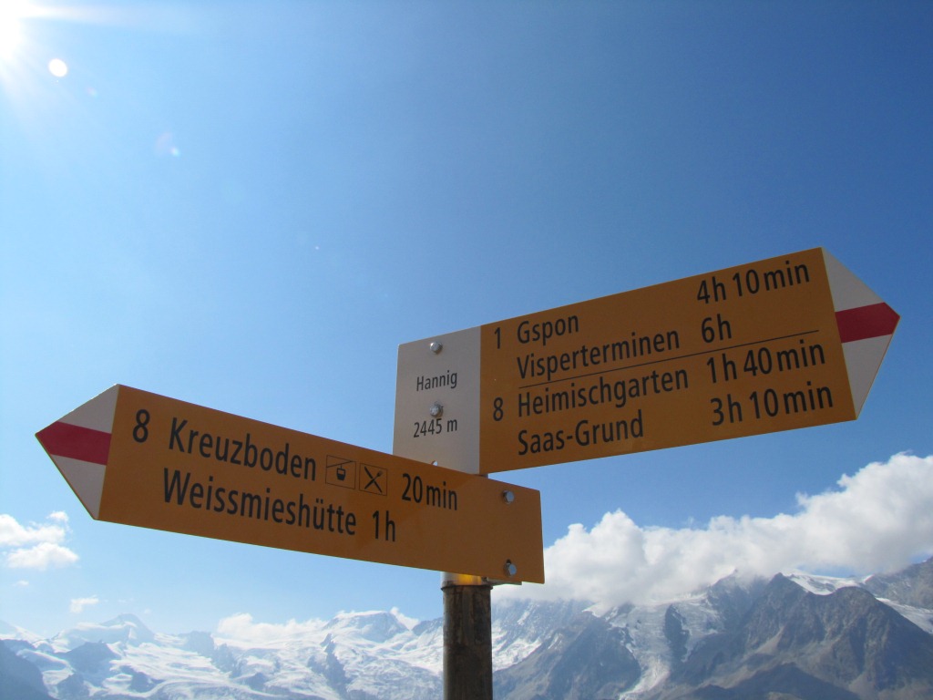 Wegweiser bei Hannig 2445 m.ü.M.