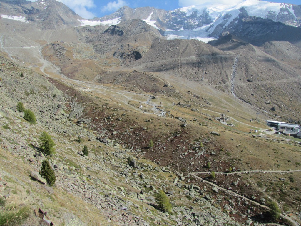 Blick Richtung Saas Fee und die Mischabel Gruppe. Der Dom ist leider hinter den Wolken verdeckt