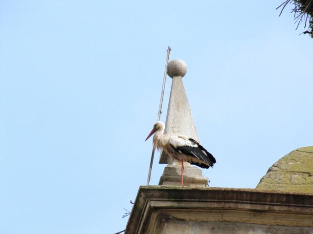 dieser Storch hat sich ein guter Aussichtspunkt ausgesucht