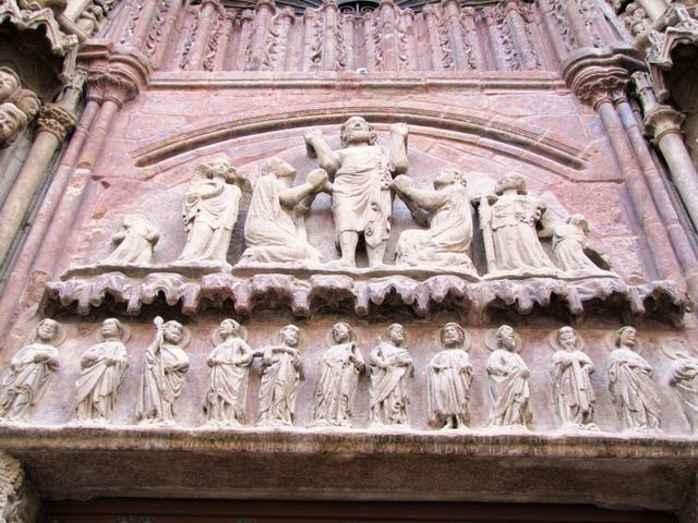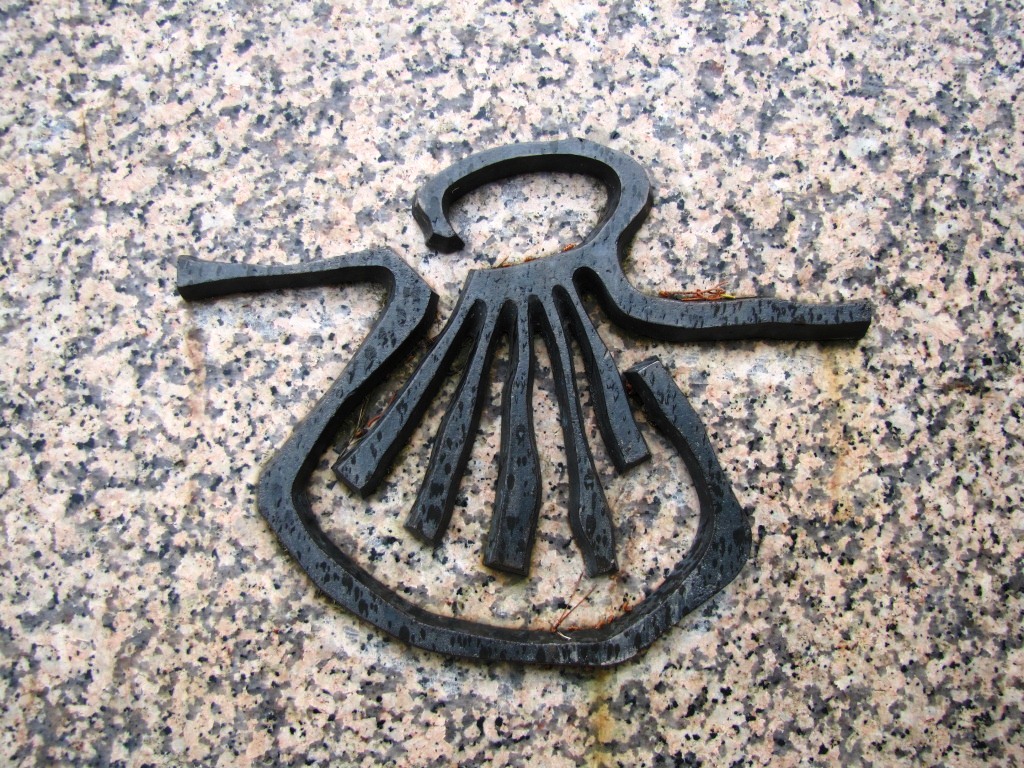 der Weg führt uns an der Santiago Kirche vorbei. Über dem Portal Jakob als Maurentöter