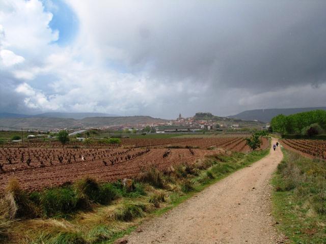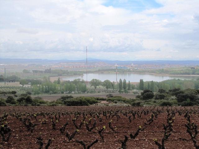 Blick zurück nach Logroño und den Stausee La Grajera