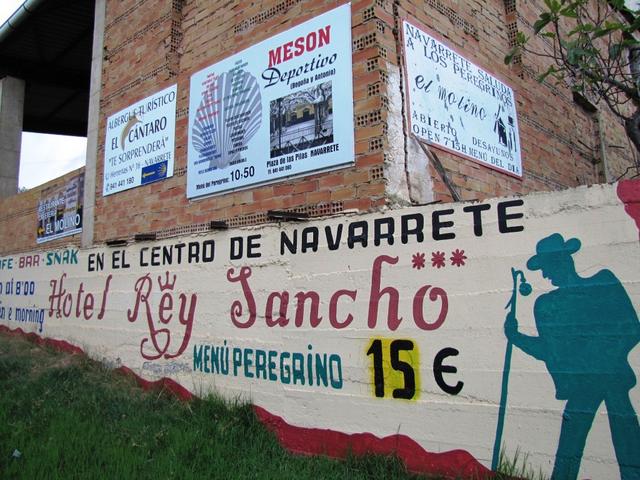 überall Werbetafeln. Der Pilger hat hier eine grosse Auswahl von Übernachtungsmöglichkeiten