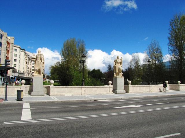 acht Skulpturen die Personen aus dem Umfeld des El Cid darstellen, schmücken die San Pablo Brücke