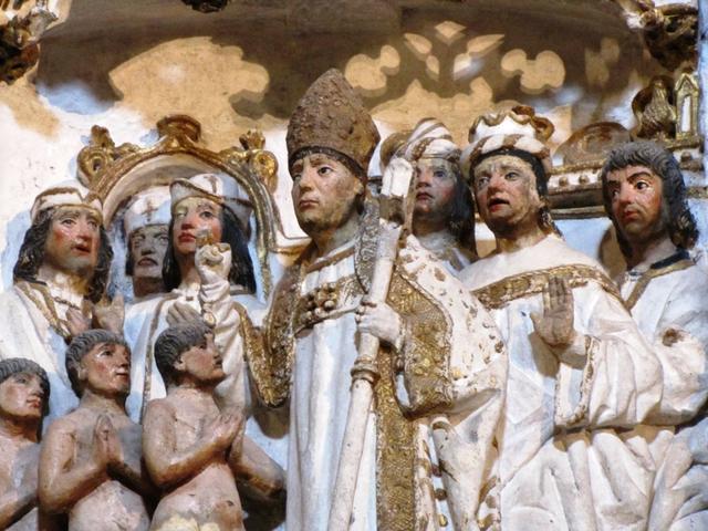 der Altaraufsatz zeigt Bildreiche Szenen aus dem Leben von San Nicolás...
