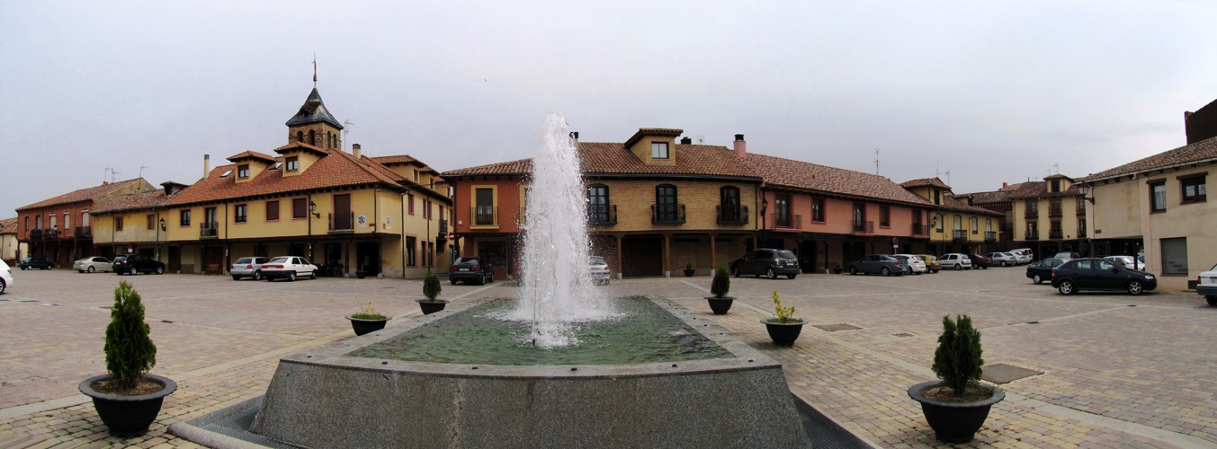 Breitbildfoto der Plaza Mayor von Mansilla de las Mulas Datum 21.11.2016