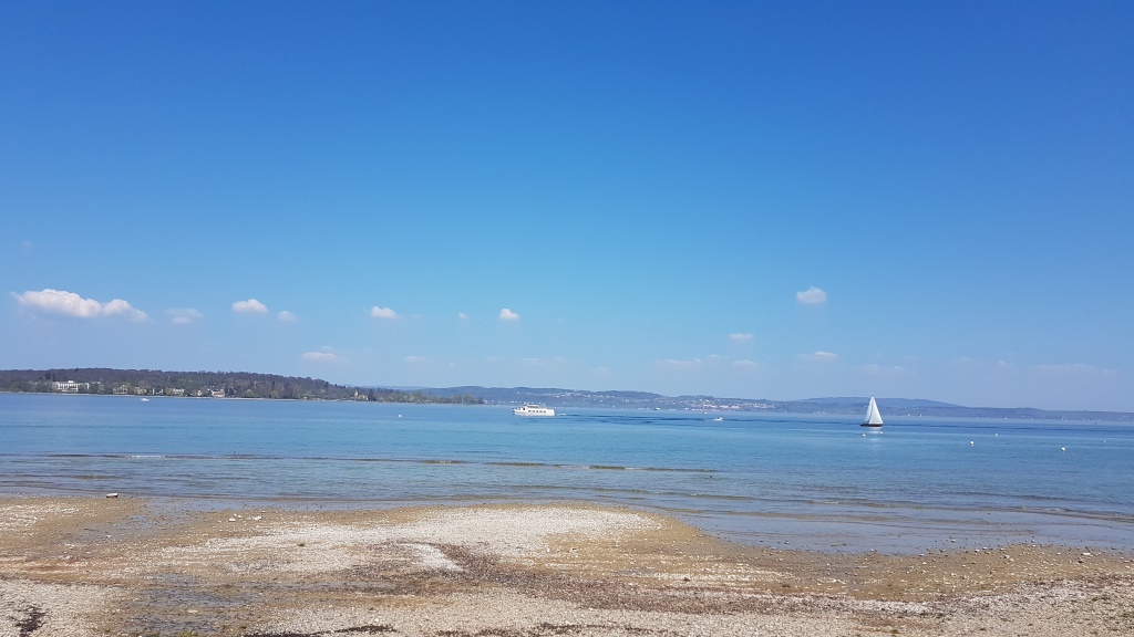 vom Biergarten aus, schauen wir auf den Bodensee, der uns so viele schöne Eindrücke geschenkt hat