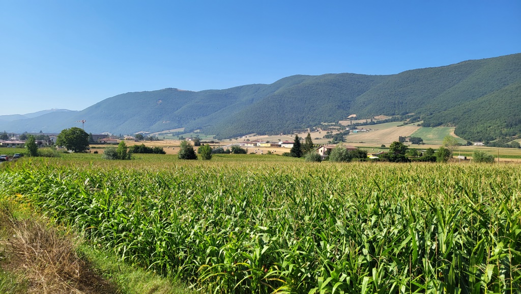 bei Piediripa führt der Weg einen Rechtsbogen durch, und wir verlassen die schöne Ebene
