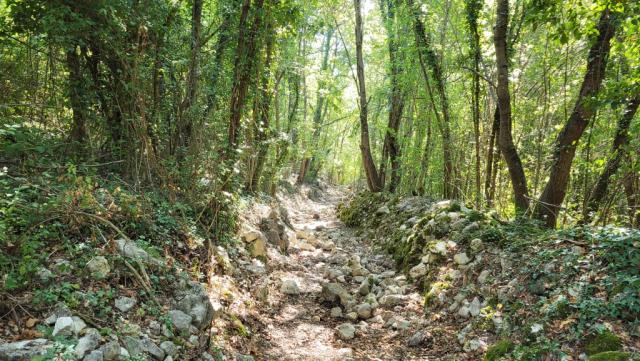 die Natur hat in den Jahrhunderten die ehemalige Kopfsteinpflasterstrasse zurückerobert